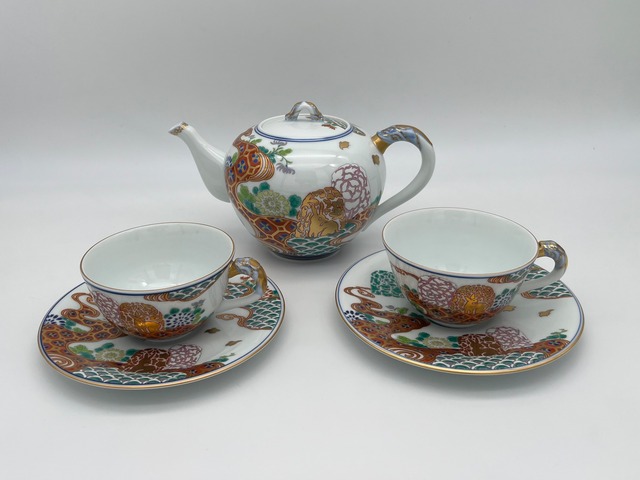 金襴手花兎文ティーセット(ティーポット1+ペアカツプ&ソーサー2