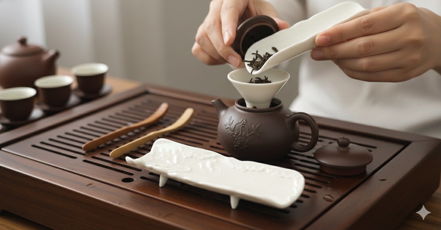 中国茶や日本茶の茶葉の分量の加減や色、香りをお茶を淹れる前に点検する道具です。
