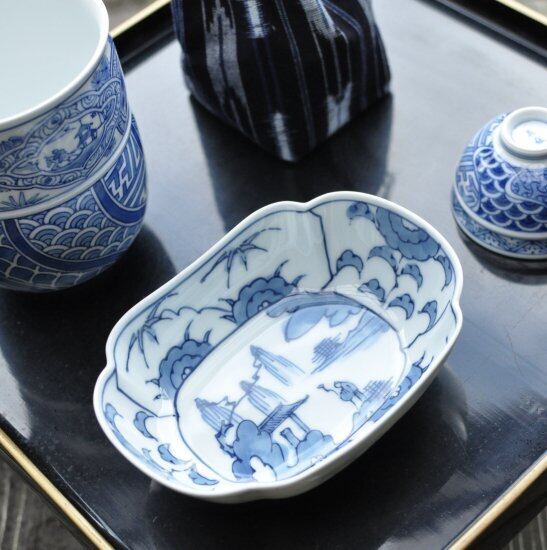 中国の景徳鎮周辺の民窯で焼かれた古染付に範を求めた器に倣い創作しました。