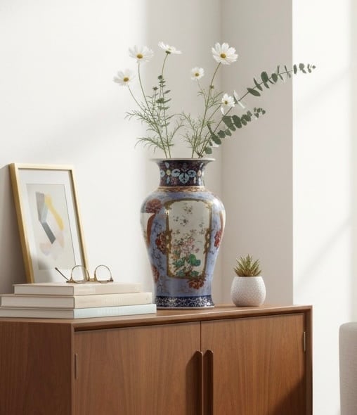 花瓶のサイズは、高さ約30cmで存在感があります。どんな場所に置いても、インテリアのアクセントになること間違いありません。また、この時代の花瓶は非常に希少なため、コレクターアイテムとしても価値が高まるでしょう。これら明治伊万里は近代産業文化遺産です。