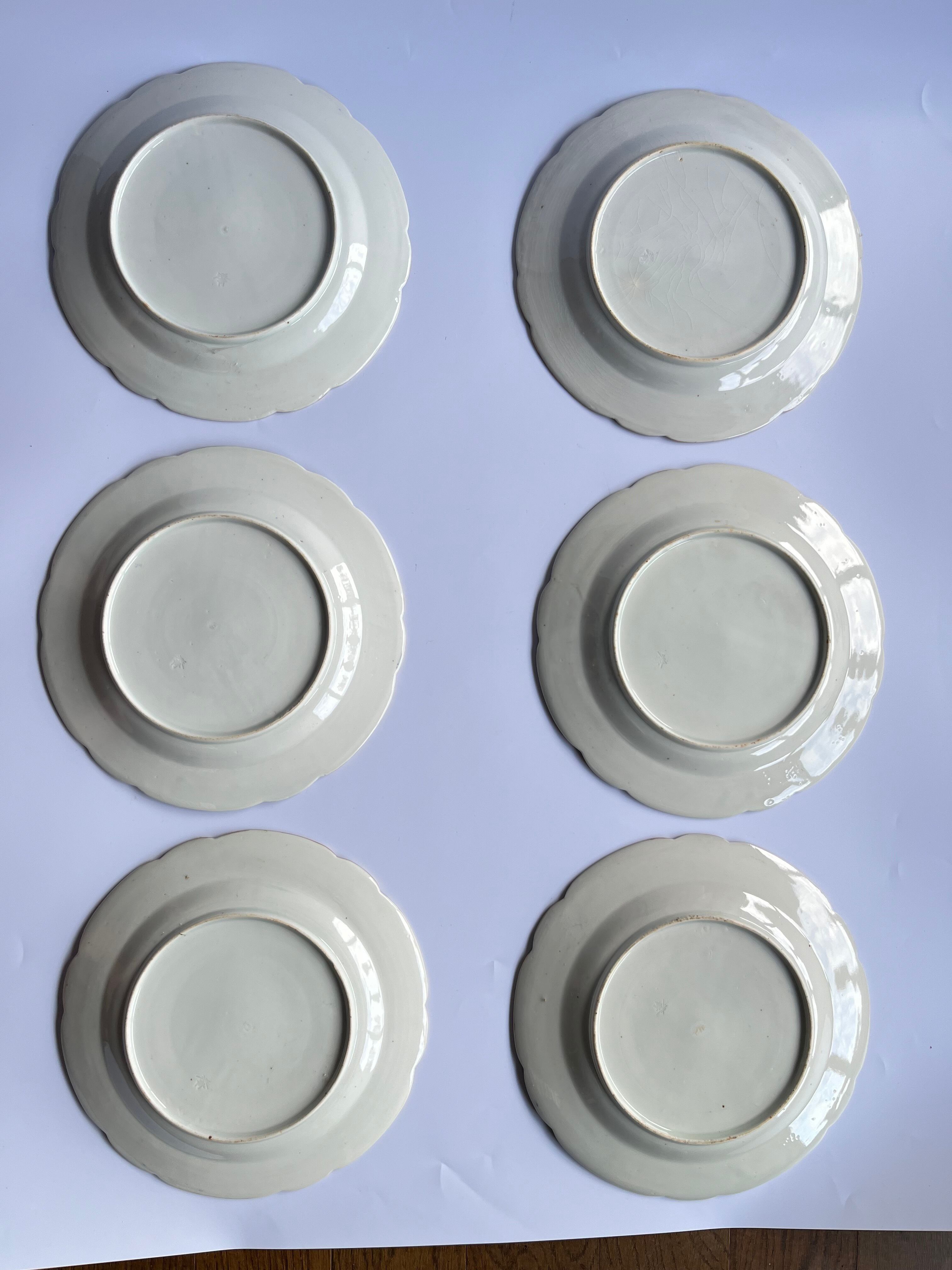 アンティーク 色絵リボン蝶文洋皿 6枚組 精磁会社製 明治中期