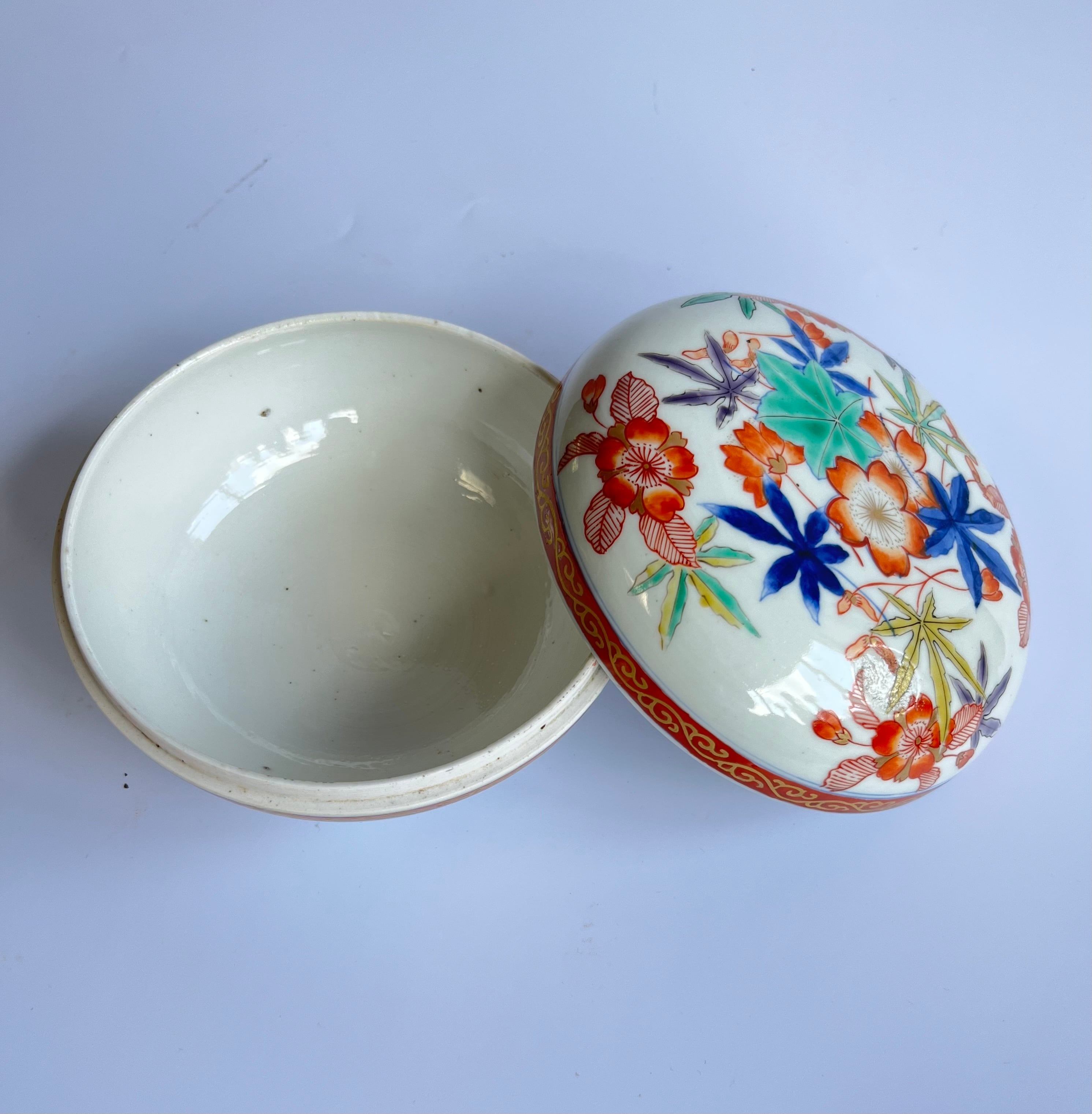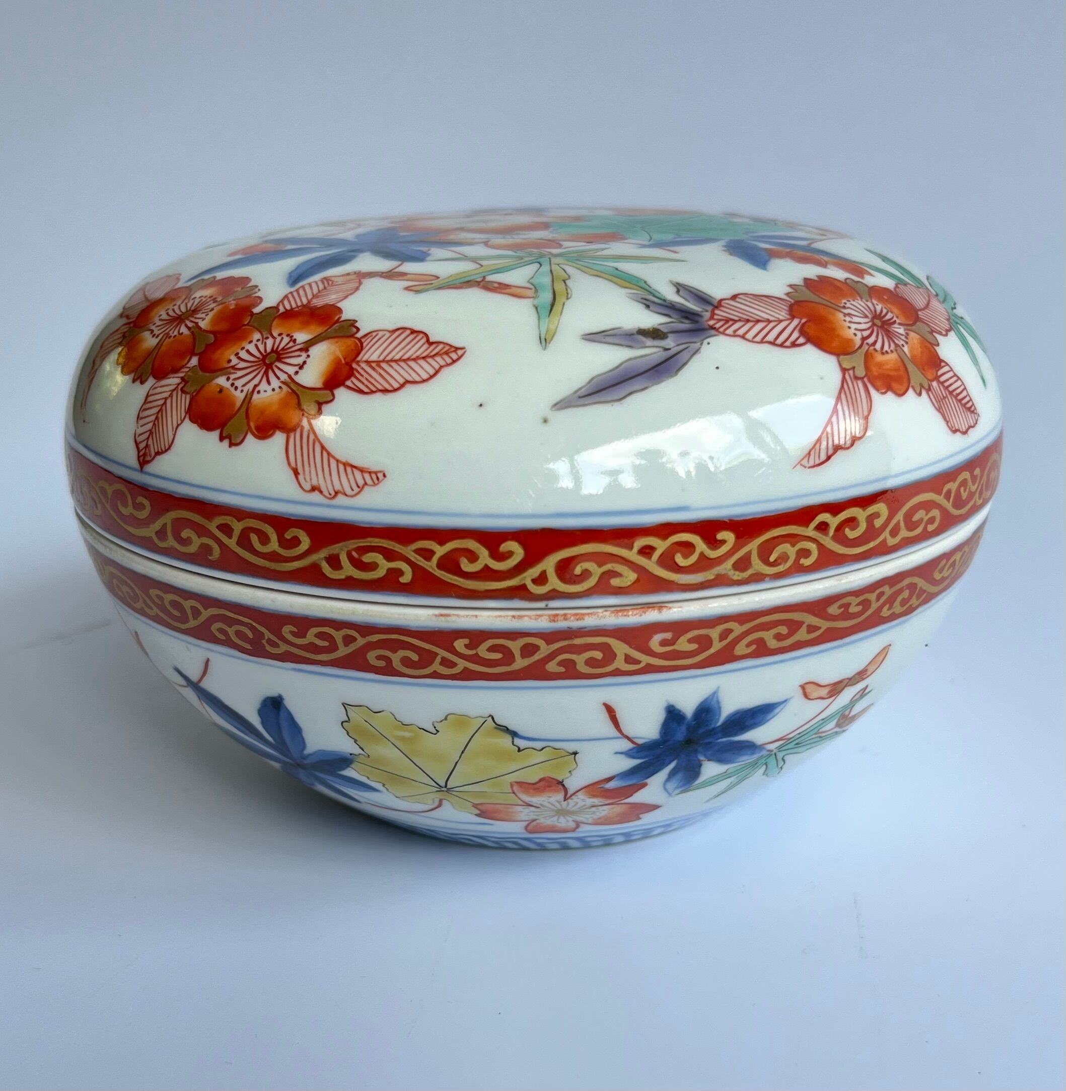 アンティーク 色絵春秋文蓋物 精磁会社製 明治中期
